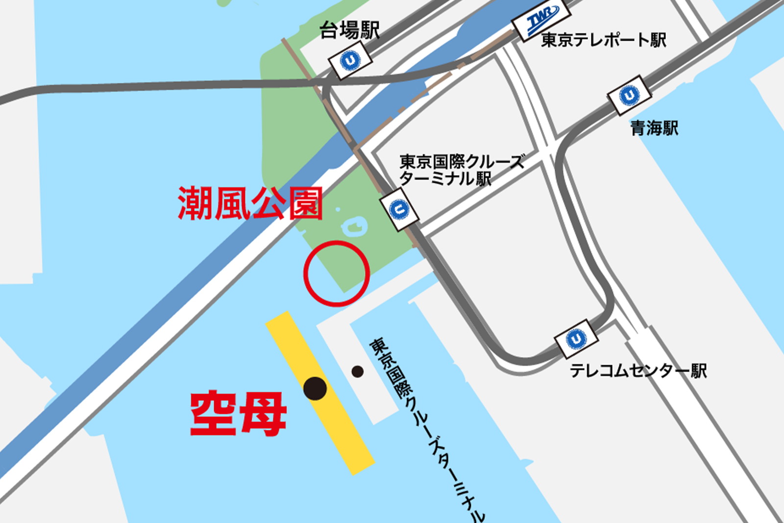 なお空母寄港に伴い、東京国際クルーズターミナルは立ち入ることができません