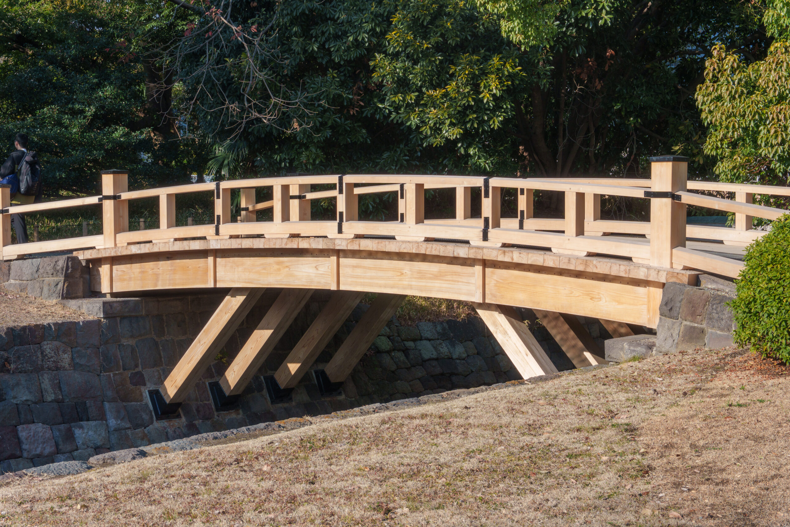 石組みの堀に架けられた木の橋は、まるで江戸時代の日本橋のようにも見えた。