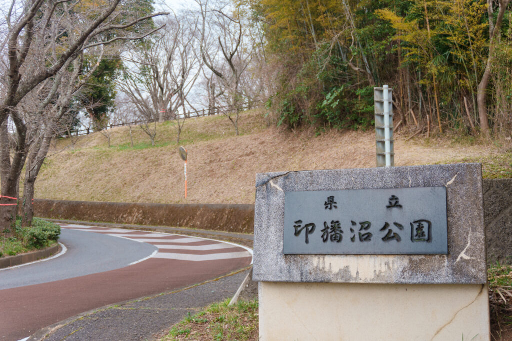 橋を渡ると歩道のない道が続くので車に注意して進もう。左側には畑が広がり、まるで田舎の風景のよう。一軒家のエリアを抜けたところで「県立印旛沼公園」の入り口に着いた。