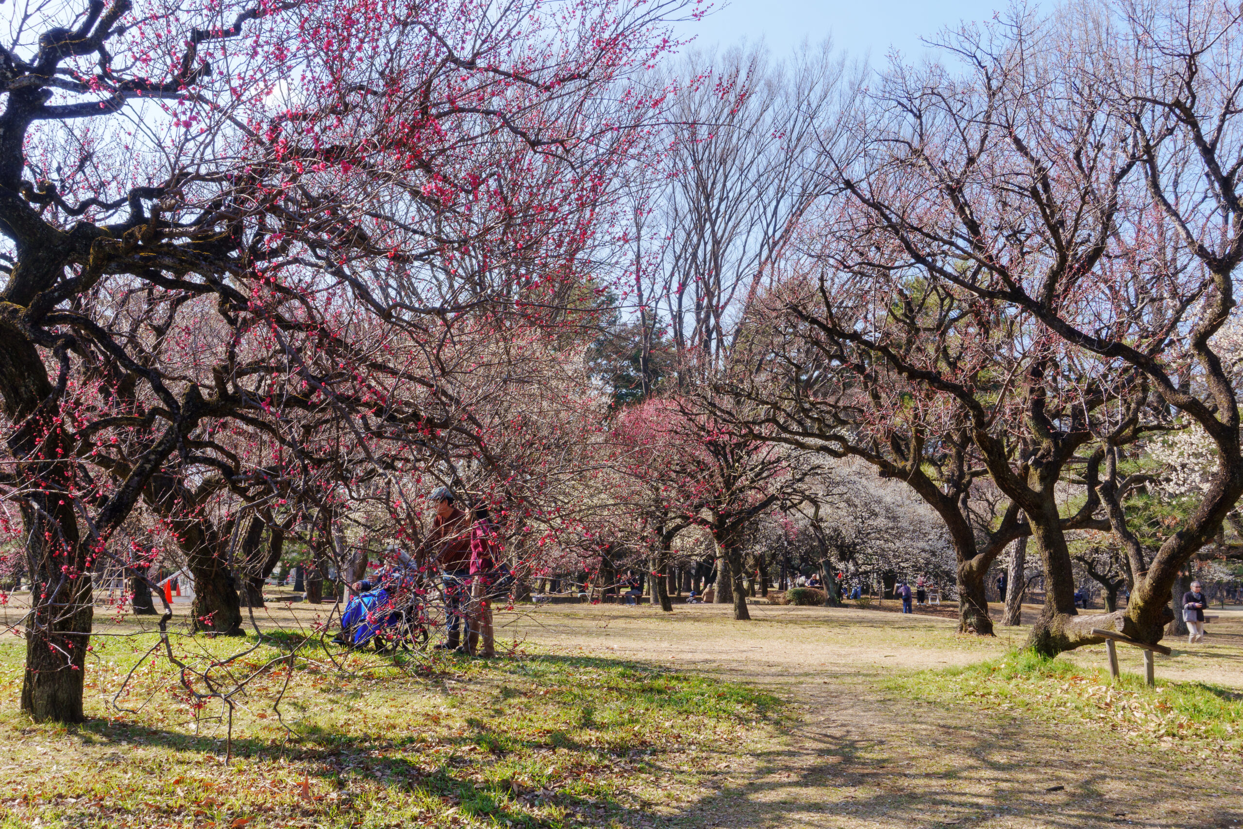 また、園内や園路は広く、梅林では車椅子やベビーカーを引く来園者も多くみられた。