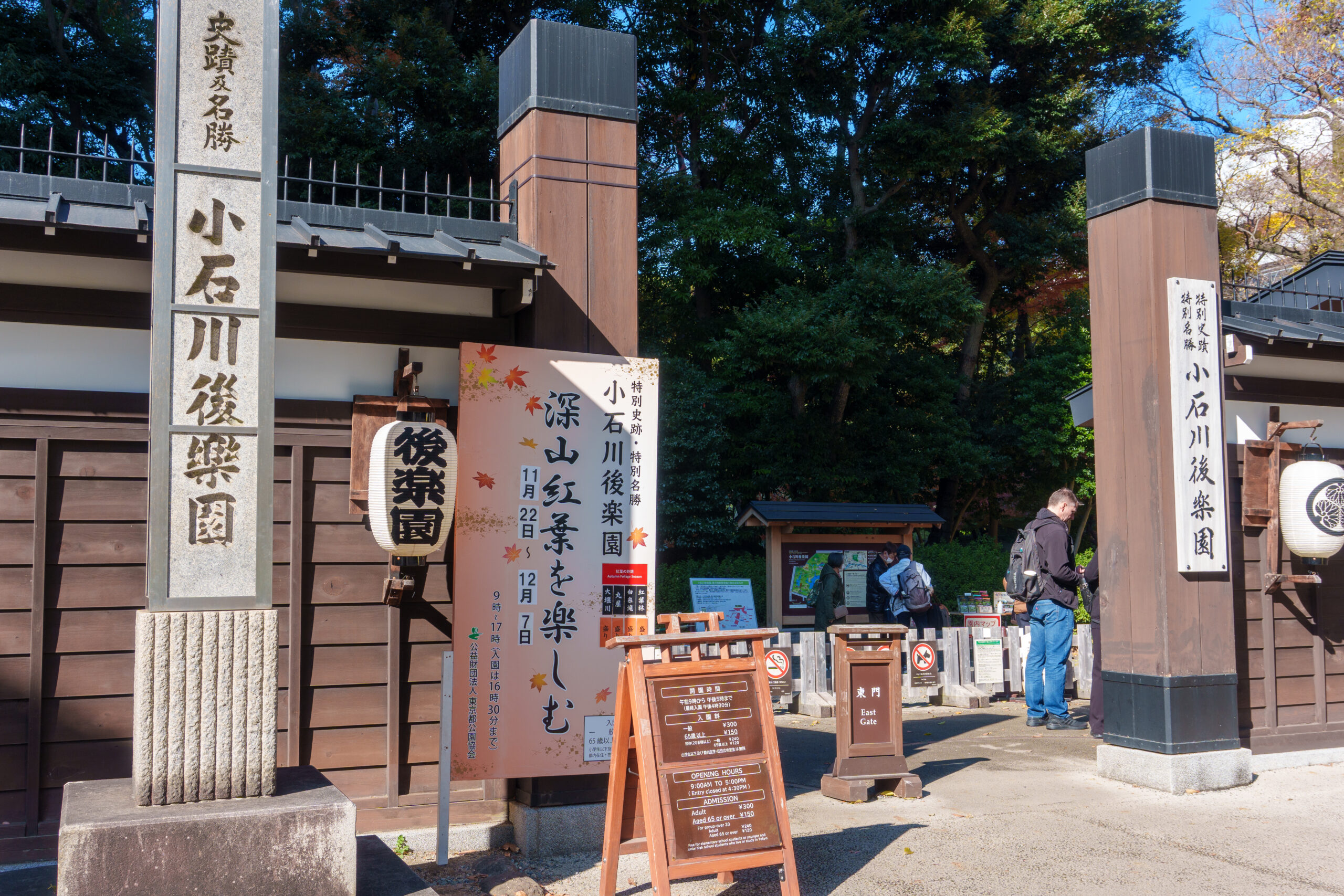 東京ドームの横を回り込んで歩くこと7分、小石川後楽園の東門に到着した。