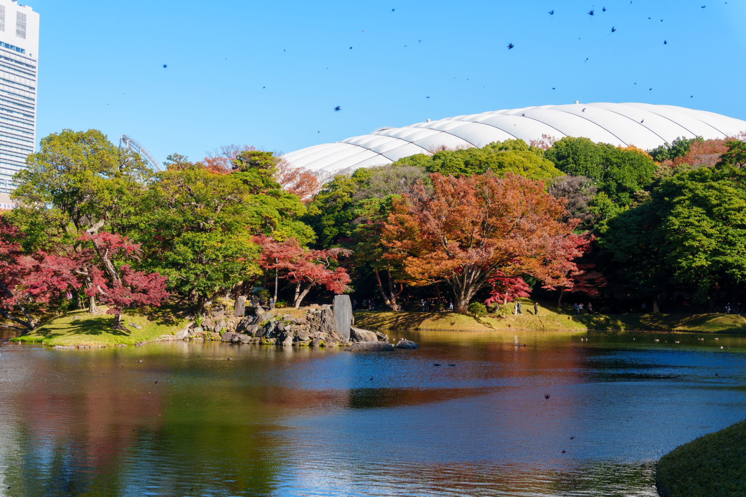 東京ドームに隣接する立地ながら、園内には深山幽谷の如き静寂が広がる。