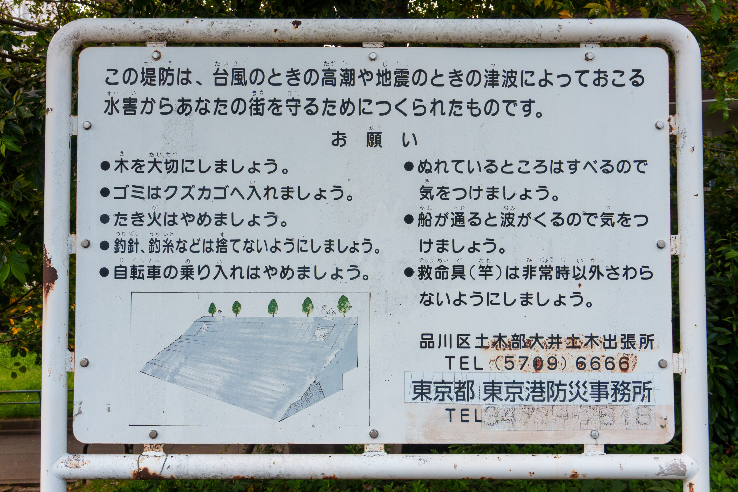 この堤防は勝島運河の防潮堤で、高潮や津波を防ぐ役割があるという