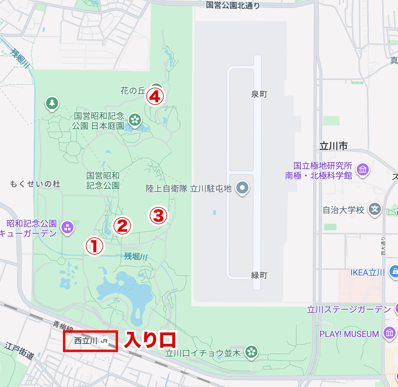 国営昭和記念公園の最寄り駅は全部で5つあります