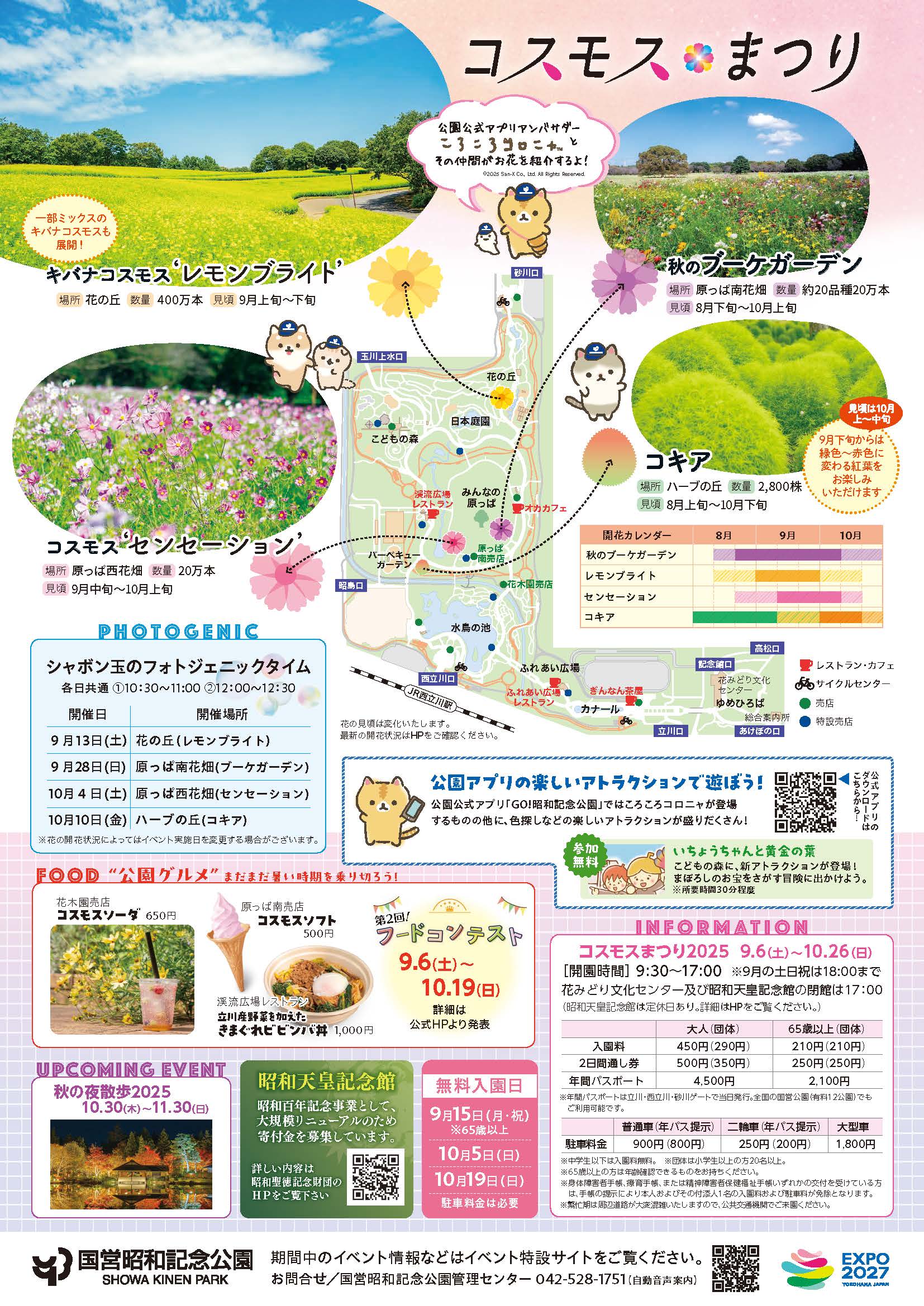 しかし国営昭和記念公園は東京ドーム40個分にも及ぶ広さで、有料区の入場ゲートは5つ、最寄駅も5つあります