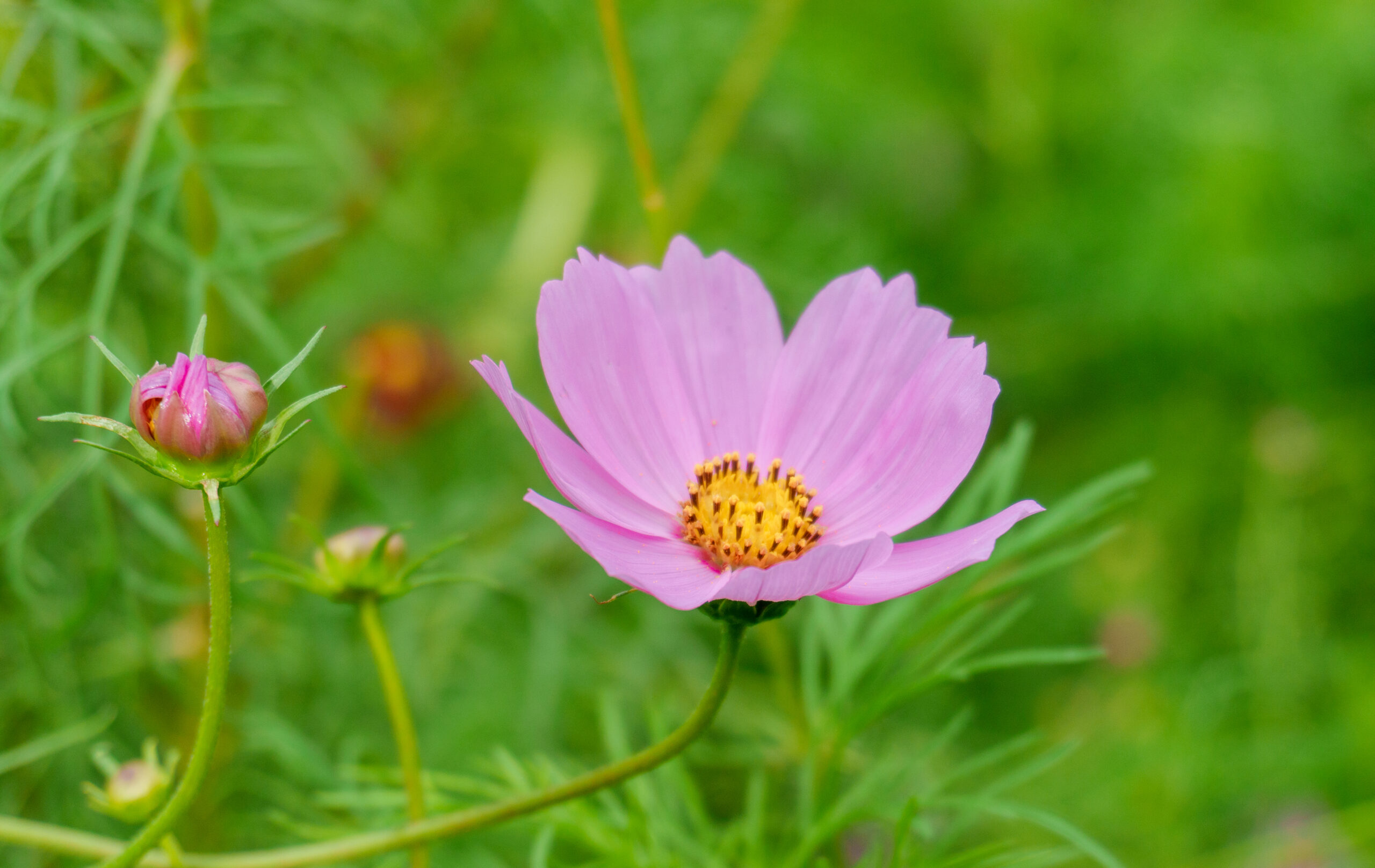 派手さは他のコスモス畑に比べて控えめですが、美しい上品さがあります