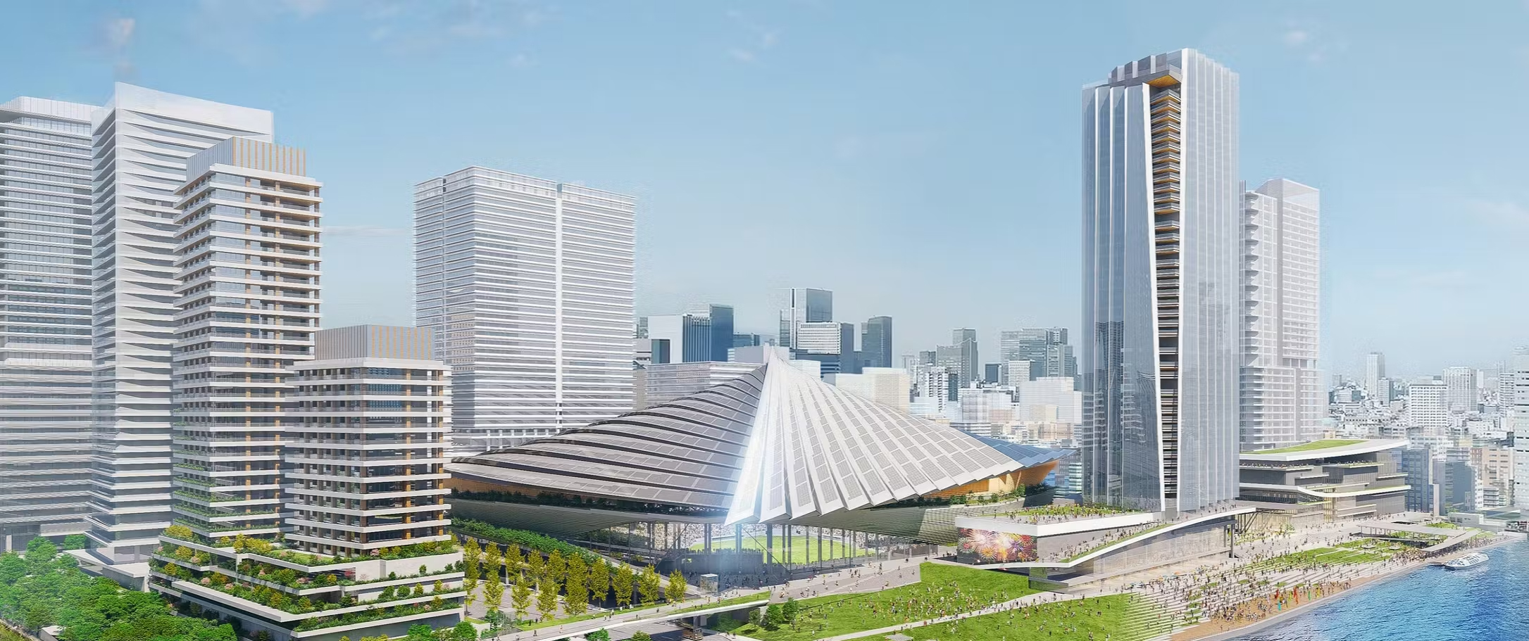 ふふっ、そうでしょ?これはね、東京の築地市場があった場所に、新しく作られるスタジアムの完成イメージ図なんだよ。